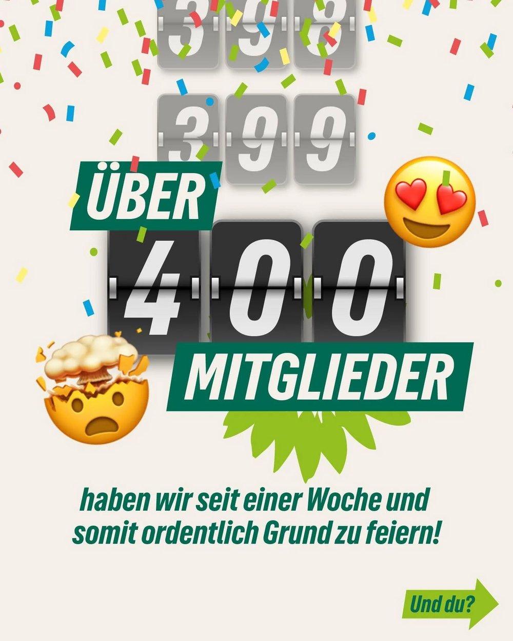 Wir sind 400 GRÜNE in Magdeburg! In den letzten 16 Monaten sind wir um 25% gewachsen Danke an unsere engagierten neuen Mitglieder - Magdeburg braucht euch!