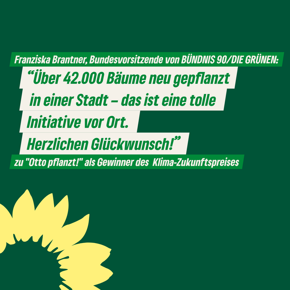 Franziska Brantner, Bundesvorsitzende von BÜNDNIS 90/DIE GRÜNEN, betonte den Fortschritt des Vereins bei seinem Vorhaben in Magdeburg: “Über 42.000 Bäume neu gepflanzt in einer Stadt – das ist eine tolle Initiative vor Ort. Herzlichen Glückwunsch!”