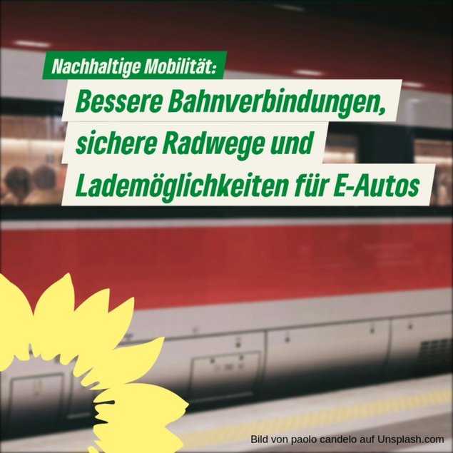 Nachhaltige Mobilität: Bessere Bahnverbindungen, sichere Radwege und Ladeinfrastruktur für E-Mobilität – damit klimafreundliche Mobilität für alle erreichbar wird.