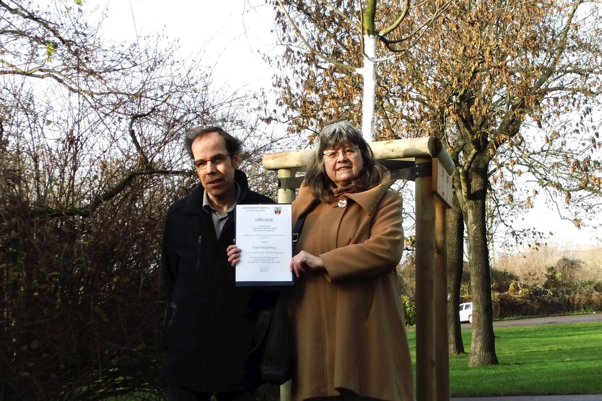 Mit dem Programm "Mein Baum für Magdeburg" können Bürger, Vereine und Unternehmen die Neupflanzung von Bäumen in unserer Stadt unterstützen. Der bereits zum Tag des Baumes am 25. April 2015 durch den Magdeburger Kreisverband von BÜNDNIS 90/DIE GRÜNEN gespendete Baum konnte nun im Herbst gepflanzt werden. Die junge Eiche steht im Glacis unweit des Platzes des 17. Juni, am Fuss- und Radweg zwischen südlicher Innenstadt und Stadtfeld.