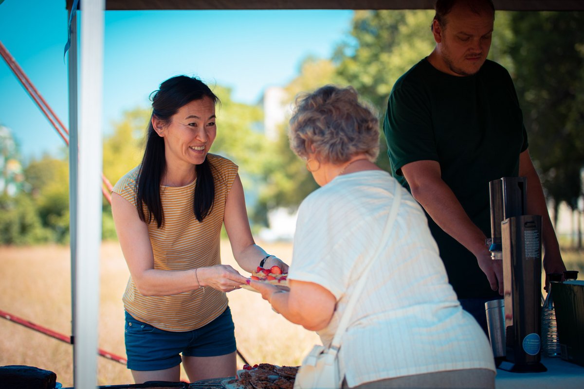 Neben Waffeln konnten sich die  Besucher*innen mit Kuchen, Sojasteaks und Gemüsespießen stärken. Zahlreichen Spiele, wie das Dosenwerfen, 4 gewinnt und Bausteine sowie das Herstellen von Saatkugeln luden zum Mitmachen ein.
