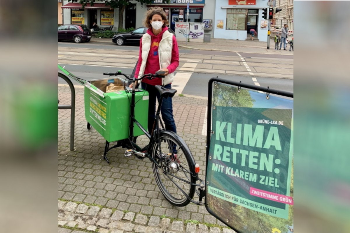 Aber nicht nur in der Innenstadt waren wir heute im Einsatz. Unsere Kandidatin Antje Buschschulte hat sich heute auf das Fahrrad gesetzt und ist durch ihren Wahlkreis geradelt: "Heute Vormittag war ich mit dem Grünen Lastenrad in Sudenburg auf der Halberstädter Straße unterwegs und mit vielen aufgeschlossenen Menschen im Gespräch. Ich nehme die Frage mit, wann es für die Fahrzeuge im Katastrophenschutz Emissionsfreie Alternativen gibt."