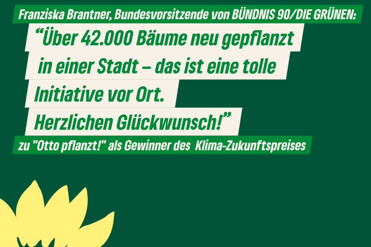 Franziska Brantner, Bundesvorsitzende von BÜNDNIS 90/DIE GRÜNEN, betonte den Fortschritt des Vereins bei seinem Vorhaben in Magdeburg: “Über 42.000 Bäume neu gepflanzt in einer Stadt – das ist eine tolle Initiative vor Ort. Herzlichen Glückwunsch!”