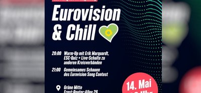 10.05.22 - Wir wollen mit dir gemeinsam den diesjährigen Eurovision-Song-Contest schauen und mit unserem Europaabgeordneten Erik Marquardt in gemütlicher Atmosphäre den europäischen Spirit genießen. Wir laden dich zum 14.05.22 ab 20:00 Uhr herzlich zu unserer digitalen Vor-Party zum Eurovision-Song-Contest 2022 in die Grüne Mitte (Ernst-Reuter-Alle 26, 39104 Magdeburg) ein.