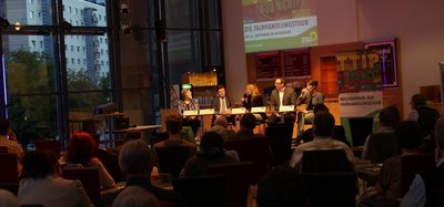 23.09.15 - Zur "Fairhandlungstour" unter dem Motto "TTIP - so nicht!" hatte die Bundestagsfraktion von BÜNDNIS 90/DIE GRÜNEN zusammen mit StefFi Lemke MdB und Bärbel Höhn MdB am 23. September ins Cafe Rossini in Magdeburg eingeladen um zusammen mit ihren Gästen, Dr. Thomas Brockmeier (IHK Halle-Dessau), Stefan Korneck (Wirtschaftsjunioren Sachsen-Anhalt) und Linn Selle (Verbraucherzentrale Bundesverband) über das Freihandelsabkommen zu informieren.