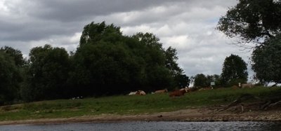 10.07.15 - Glückliche Kühe bei Schönebeck - sie ließen sich nicht stören vom altgedienten Schlauchboot des BUND, in dem vorwiegend Bündnisgrüne, aber auch Kirchenvertreter am 10. Juli 2015 elbabwärts paddelten: Ernst-Paul Dörfler, Iris Brunar, Olaf Meister u. a. Beim "Dialog im Boot" erfuhren wir, dass Ernst-Paul Dörfler weder bei der Volkshochschule noch bei der Urania als Elbe-Referent erwünscht ist; seine Ansichten stören anscheinend die Elbausbaufreunde...