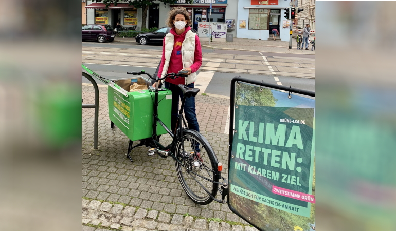 Aber nicht nur in der Innenstadt waren wir heute im Einsatz. Unsere Kandidatin Antje Buschschulte hat sich heute auf das Fahrrad gesetzt und ist durch ihren Wahlkreis geradelt: "Heute Vormittag war ich mit dem Grünen Lastenrad in Sudenburg auf der Halberstädter Straße unterwegs und mit vielen aufgeschlossenen Menschen im Gespräch. Ich nehme die Frage mit, wann es für die Fahrzeuge im Katastrophenschutz Emissionsfreie Alternativen gibt."