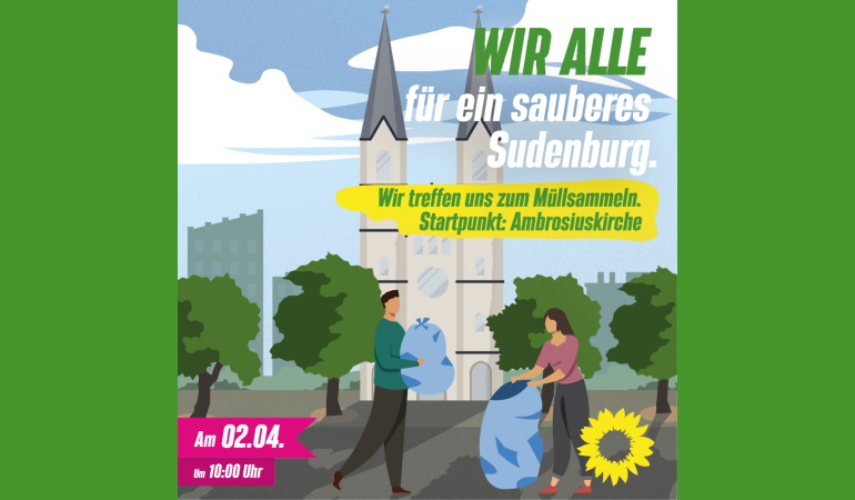 Die grüne Stadtteilgruppe Sudenburg lädt am Samstag, 2. April um 10 Uhr zum Müllsammeln am Ambrosiusplatz. Alle Magdeburgerinnen und Magdeburger sind herzlich eingeladen bei der Putzaktion mitzuhelfen.
