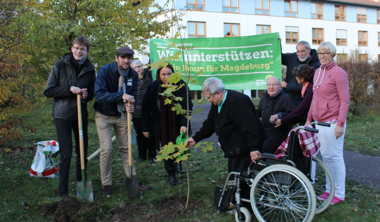 Zusammen mit dem AWO-Kreisverband Magdeburg haben BÜNDNIS 90/DIE GRÜNEN Magdeburg am 12. November 2019 auf dem Gelände der Kita Bummi einen Birnenbaum und auf dem Gelände des Altenpflegeheims "Haus Krähenstieg" einen Apfel- und einen Spitzahornbaum gepflanzt.