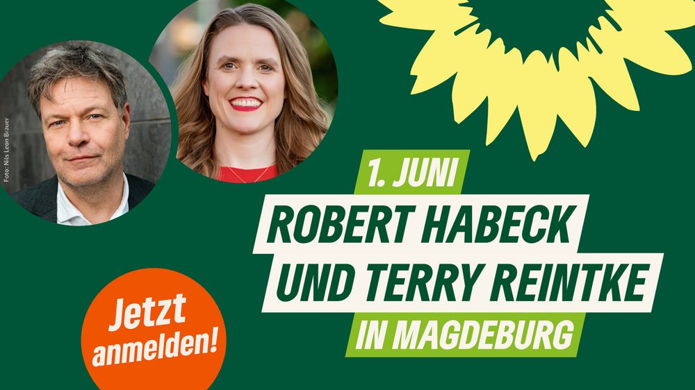 Im Rahmen der Europatour erwarten wir Robert Habeck, unsere Europa-Spitzenkandidatin Terry Reintke, unsere sachsen-anhaltische Europakandidatin Thea-Helene Gieroska sowie Sergey Lagodinsky (Listenplatz 2) in Magdeburg.