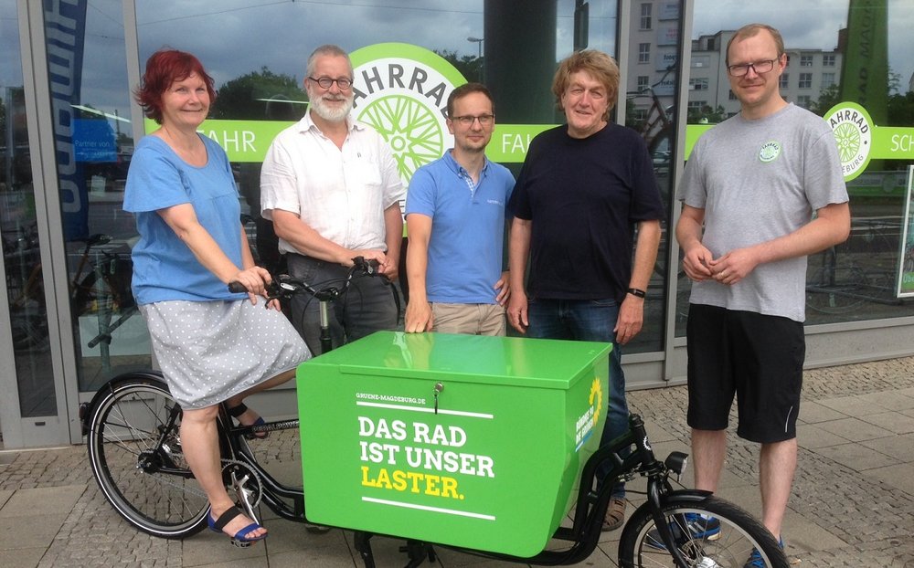 Immer mehr Menschen steigen um auf Bus, Bahn und Fahrrad – auch in Städten wie Magdeburg. Doch leider sind in unserer Stadt schlechte Fuß- und Radwege noch immer Realität. Wir stehen schon immer für Verbesserungen im Radverkehr und wollen deutlich zeigen, dass Transporte auch ohne Auto möglich sind. Lastenräder sind keine moderne Erfindung. Bereits in früheren Zeiten wurde diese im Handel und Gewerbe als auch für Boten- und Kurierdienste in Ermangelung von Alternativen gewählt. Unser neues grünes Lastenrad ist mit seinen fahrenden Mitgliedern ein Bote für bewährte und neue Konzepte der Mobilität!