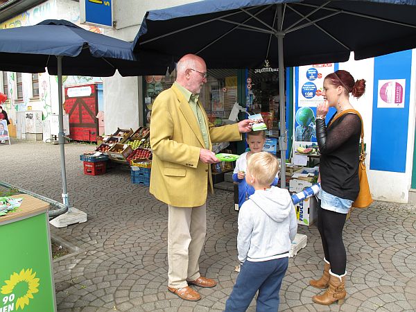 Am 10.05.2014 wurde der Eiskellerplatz 3 Stunden lang begrünt. Von 10 bis 13 Uhr betrieben Alfred Westphal und Eva-Maria Schulz-Satzky, Listenplatz 1 und 2 im Wahlbereich Sudenburg-Lemsdorf, einen Infostand auf dem zentralen Platz und informierten interessierte Bürgerinnen und Bürger über grüne Kommunalpolitik und ihre Ziele.