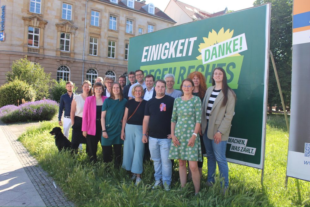 "Das Ergebnis spiegelt nicht das Engagement und den Einsatz der Stadträt*innen während der letzten fünf Jahre wider, was uns sehr enttäuscht", sagt Vorsitzende Thea-Helene Gieroska. "Von einer rot-rot-grünen-future!-Mehrheit verschiebt sich die Mehrheit zu CDU, AfD und Kleinparteien. Wir gratulieren der CDU zum Wahlsieg und erwarten von ihr, dass sie den Willen der Bevölkerung annimmt und für demokratische Werte und Nächstenliebe einsteht. Sollte es Interesse an progressiven Mehrheiten im Stadtrat geben, stehen die GRÜNEN dafür zur Verfügung. In den nächsten Tagen werden wir Gesprächen mit anderen Parteien bzgl. der Bildung einer gemeinsamen Fraktion führen.“